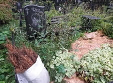 Покосившийся памятник, сорняки, неаккуратный вид могилы |