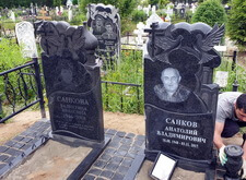 На этом участке мы работали с могилой, на которой сравнительно недавно произошло дозахоронение – земляной холм даже не успел как следует осесть и разойтись. На территории участка уже находился гранитный памятник специфической формы, копию которого нам и предстояло установить.