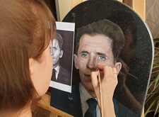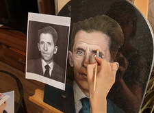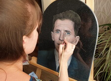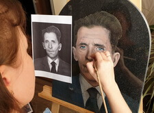 Затем наступил этап детальной прорисовки: первым делом была изображена одежда усопшего, затем – его волосы, с лишь после этого было очерчено лицо. По ходу работы изображение приобретало всё большее сходство с оригинальной фотографией.