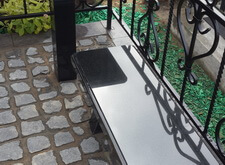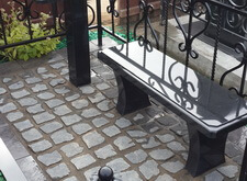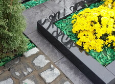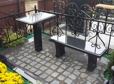 Покрасить ограду, так как чаще всего при установке ограды красят транспортировочной краской, которая приходит в негодность через год. Облицевать бетонный цоколь и бетон обрамляющий цветник. В данном случае для этого мы использовали керамогранит. Установили гранитные лавочку и столик. Посадили две туи и кустовые хризантемы в цветник. Заменили пластиковую вазу на гранитную. Уложили гранитную брусчатку на пол.