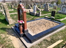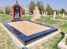 На территории места захоронения был установлен один памятник. Центральная его часть изготовлена из чёрного диабаза, а украшающая арка – из красного лезника. Надгробье украшает фигура полумесяца. На памятник мы нанесли основную информацию о покойном и эпитафию, текст дополнили портретом на керамике.