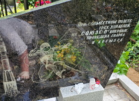 Обновление надписей и изображений на памятнике космонавта