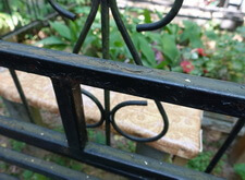 Последовательность работы стандартная. Во-первых, сжечь старую краску, во-вторых, зачистить ограду до металла, после покрыть грунтом чистый металл и покрасить черной краской. После покраски убраться на могиле. Далее на фото обожженная краска на ограде.
