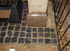 Взамен старой плиты устанавливаем небольшое надгробье из гранита перед массивной стелой, оформляем у его подножья цветник. Периметр получившейся композиции выкладываем гранитной брусчаткой. В результате у нас получилось бюджетная реконструкция половины места захоронения, второй частью клиент не позволил заниматься по личным причинам.