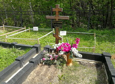 Затем приносим надгробье, предварительно укрепив на нём фотокерамику с изображением усопшего, устанавливаем его. Территорию участка засыпаем каменной крошкой, в цветник сажаем растения, в одном из углов места захоронения организовываем клумбу.