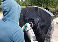Сначала мы заполировали уже находящийся на памятнике портрет самой грубой шарошкой.