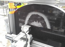 Портрет готов, пришло время сделать надпись. Мы будет делать ее методом пескоструя. Для начала нужно правильно наклеить трафарет, после песком под давлением воздуха набить надпись.